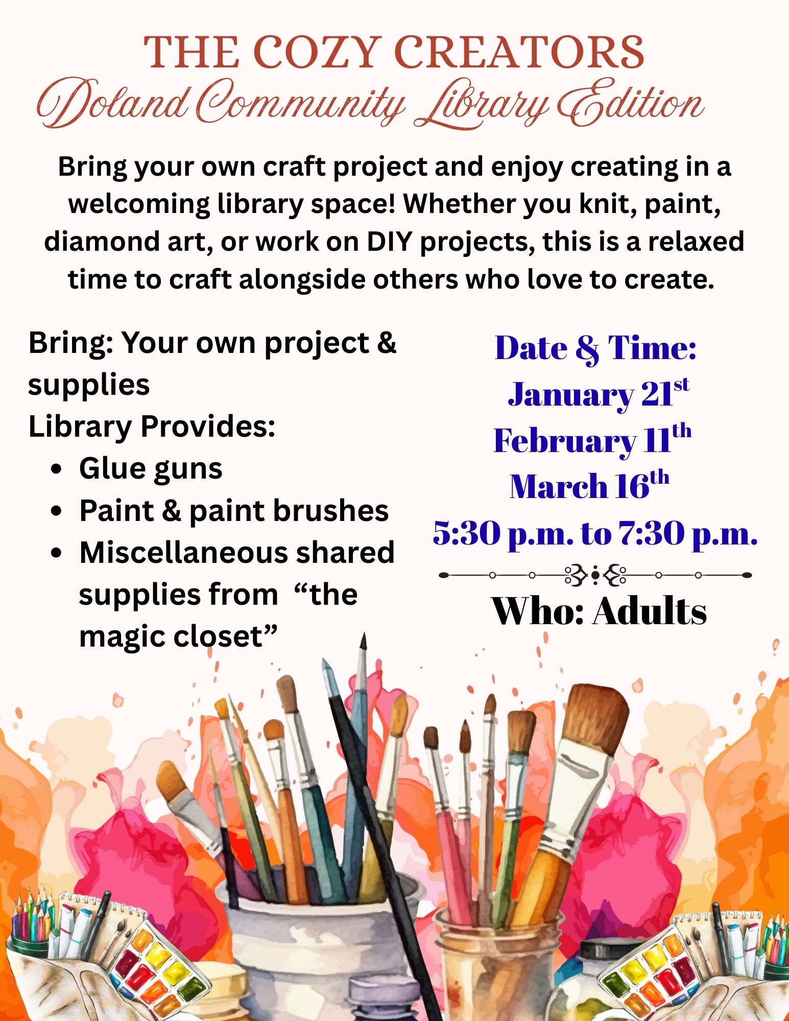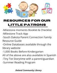 Stop into the Doland Community Library to see what we have to offer. We have some cozy spots to sit and get lost in a good book. The library has a great children’s area filled with books and toys. Make sure to follow us on Facebook, so you can see when we have special events. Don’t forget to check out our Children’s Summer Reading Program!